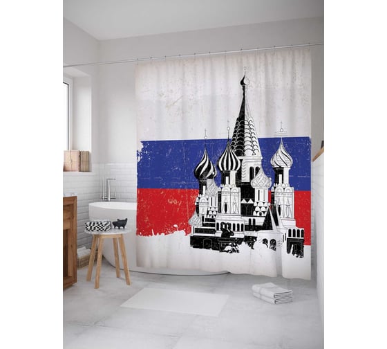 Штора (занавеска) для ванной JoyArty "Собор в Москве" из сатена, 180х200 см с крючками, sc_2929