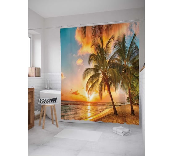 Штора (занавеска) для ванной JoyArty "Согретые пальмы" из сатена, 180х200 см с крючками, sc_8183
