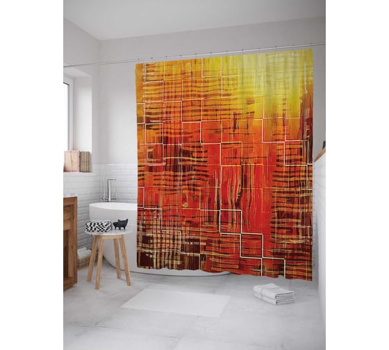 Штора (занавеска) для ванной JoyArty "Солнечная геометрия" из сатена, 180х200 см с крючками, sc_16715
