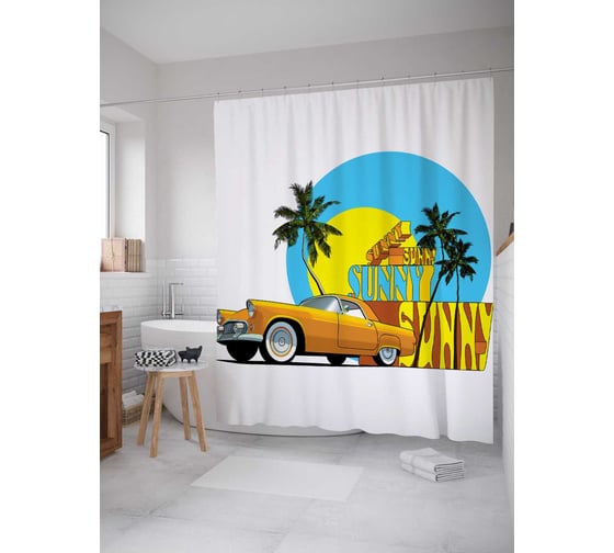 Штора (занавеска) для ванной JoyArty "Солнечная поездка" из сатена, 180х200 см с крючками, sc_15582