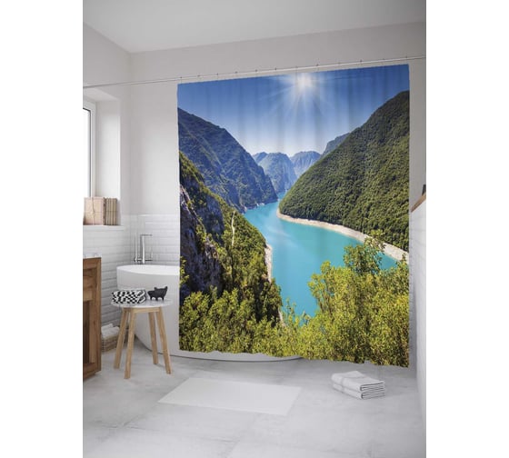 Штора (занавеска) для ванной JoyArty "Солнечная река" из сатена, 180х200 см с крючками, sc_12162