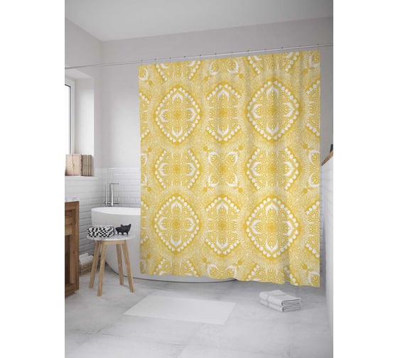 Штора (занавеска) для ванной JoyArty "Солнечные круглые салфетки" из сатена, 180х200 см с крючками, sc_36137