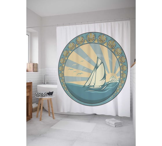 Штора (занавеска) для ванной JoyArty "Солнечные паруса" из сатена, 180х200 см с крючками, sc_12519