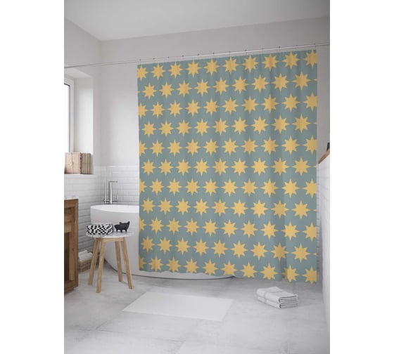Штора (занавеска) для ванной JoyArty "Солнечные звезды" из сатена, 180х200 см с крючками, sc_28699
