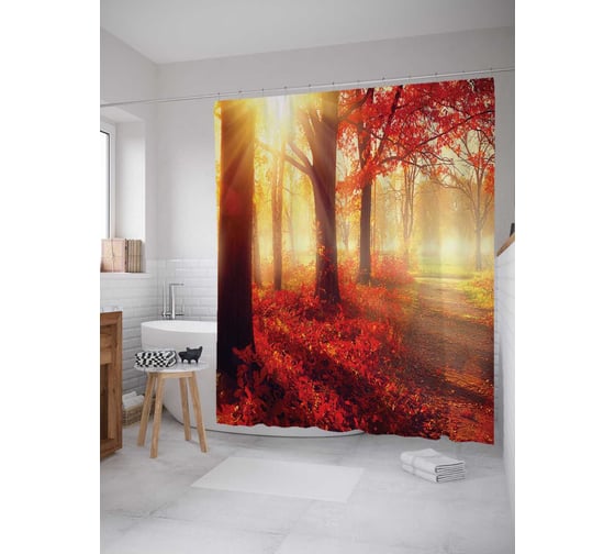 Штора (занавеска) для ванной JoyArty "Солнечный лесной туман" из сатена, 180х200 см с крючками, sc_6475
