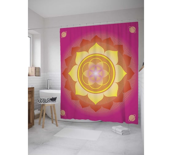 Штора (занавеска) для ванной JoyArty "Солнечный лотос" из сатена, 180х200 см с крючками, sc_35475