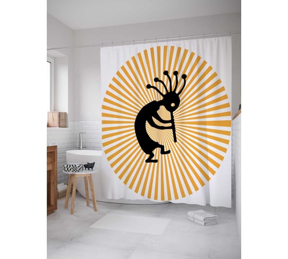 Штора (занавеска) для ванной JoyArty "Солнечный музыкант" из сатена, 180х200 см с крючками, sc_13214