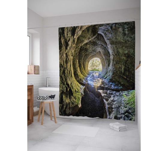 Штора (занавеска) для ванной JoyArty "Солнечный тоннель" из сатена, 180х200 см с крючками, sc_14743