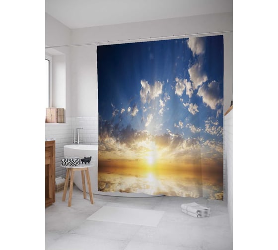 Штора (занавеска) для ванной JoyArty "Солнечный закат" из сатена, 180х200 см с крючками, sc_12883