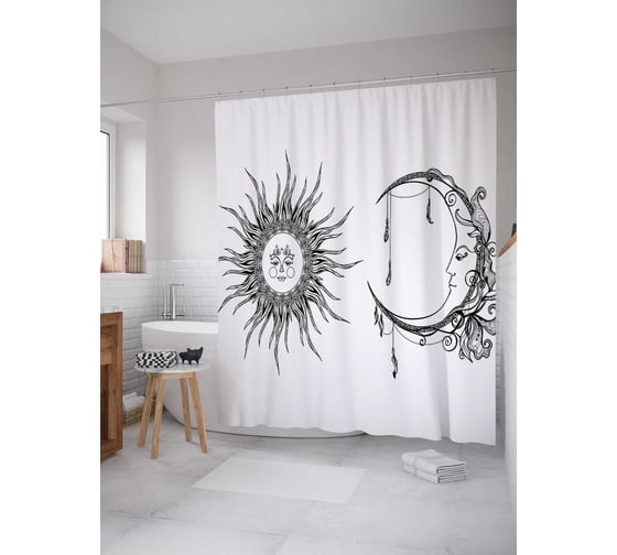 Штора (занавеска) для ванной JoyArty "Солнце и луна" из сатена, 180х200 см с крючками, sc_17720