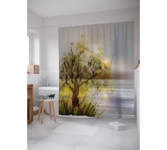 Штора (занавеска) для ванной JoyArty "Солнце отдыхает на ветках" из сатена, 180х200 см с крючками, sc_15849