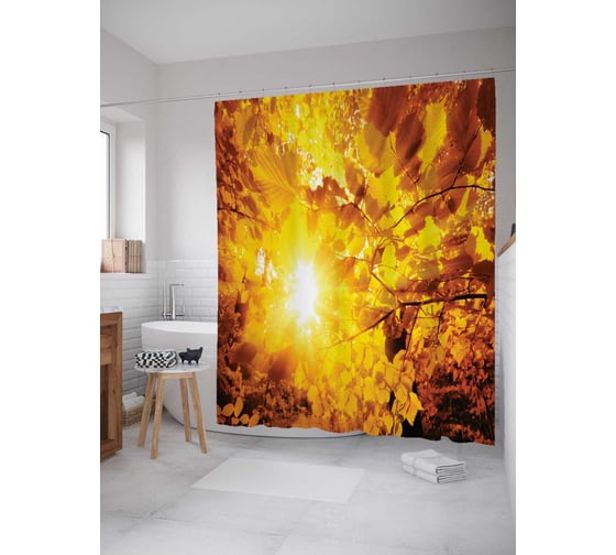 Штора (занавеска) для ванной JoyArty "Солнце в листьях" из сатена, 180х200 см с крючками, sc_14619