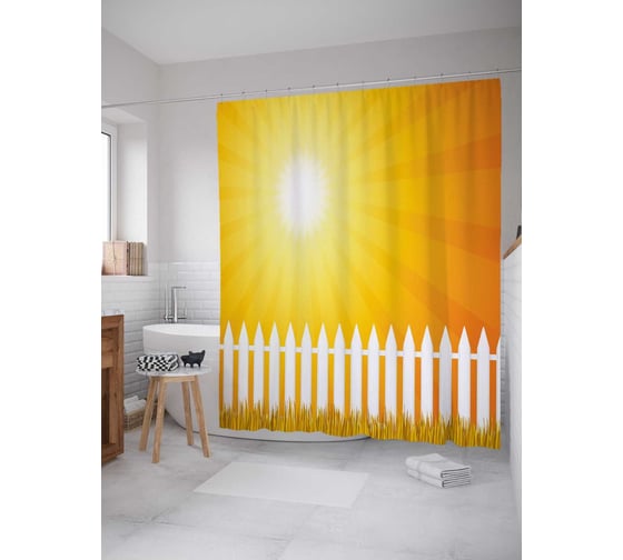 Штора (занавеска) для ванной JoyArty "Солнце за забором" из сатена, 180х200 см с крючками, sc_21893