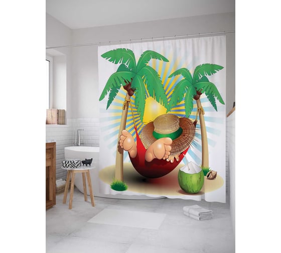 Штора (занавеска) для ванной JoyArty "Сон на жаре" из сатена, 180х200 см с крючками, sc_13913