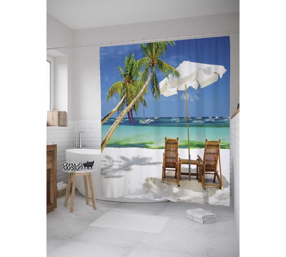 Штора (занавеска) для ванной JoyArty "Сон туриста" из сатена, 180х200 см с крючками, sc_8823