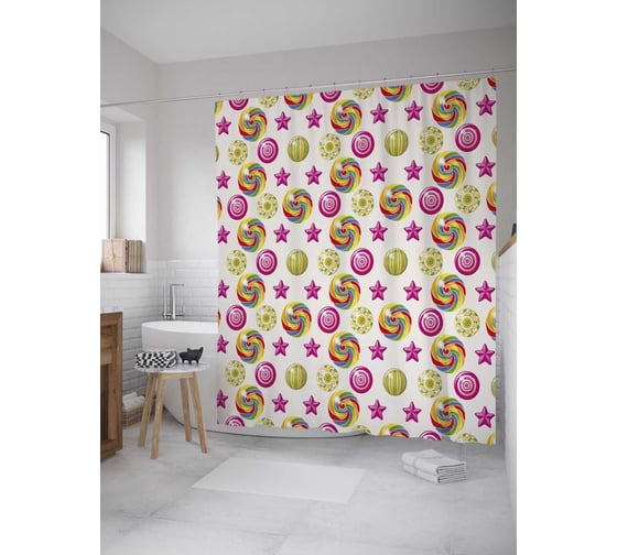 В отличие от подобных изделий из ПВХ и силикона Штора (занавеска) для ванной JoyArty "Современные фигуры" из сатена, 180х200 см с крючками, sc_32078 выгодно отличается красивым внешним видом, прочностью и длительным сроком службы. Водонепроницаемая ткань плотностью 80 г/м2 украшена стильным разноцветным принтом - нанесенная краска не боится контакта с горячей водой и не выцветает с течением времени. В комплект шторы для ванной размером 180х220 см входит 12 крючков, для которых уже подготовлены все нужные отверстия.