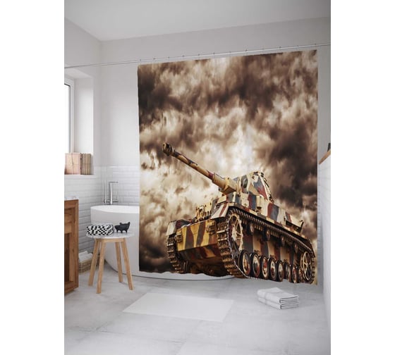 Штора (занавеска) для ванной JoyArty "Современный танк" из сатена, 180х200 см с крючками, sc_20147