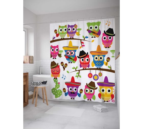 Сопутствующие товары для шторки-занавески JOYARTY Совы из Мексики из сатена, 180х200 см с крючками