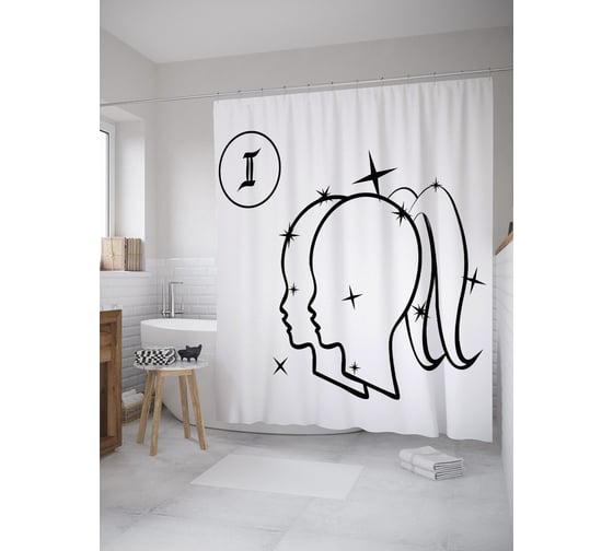 Штора (занавеска) для ванной JoyArty "Созвездие Близнецов" из сатена, 180х200 см с крючками, sc_60360