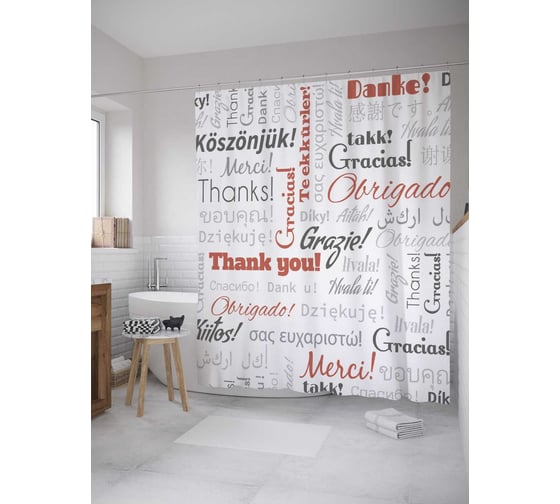 Сопутствующие товары для шторки-занавески JOYARTY Спасибо на разных языках из сатена, 180х200 см с крючками