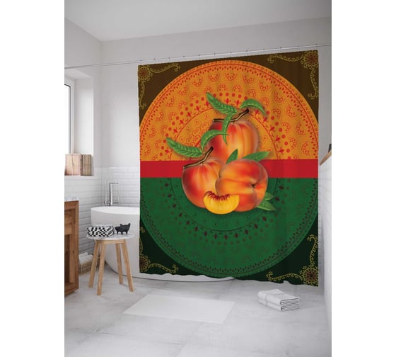 Штора (занавеска) для ванной JoyArty "Спелые персики" из сатена, 180х200 см с крючками, sc_7322