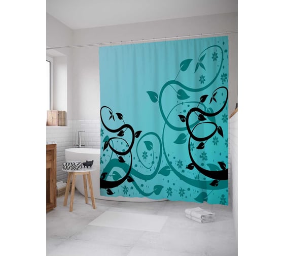 Штора (занавеска) для ванной JoyArty "Спиральное растение" из сатена, 180х200 см с крючками, sc_13241