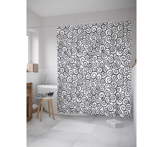 Штора (занавеска) для ванной JoyArty "Сплошные завитки" из сатена, 180х200 см с крючками, sc_28894