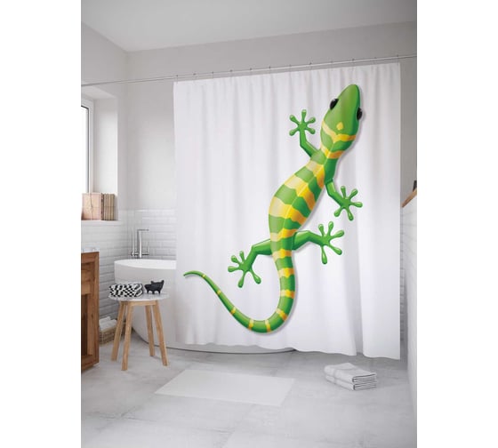 Штора (занавеска) для ванной JoyArty "Спокойная ящерица" из сатена, 180х200 см с крючками, sc_13374