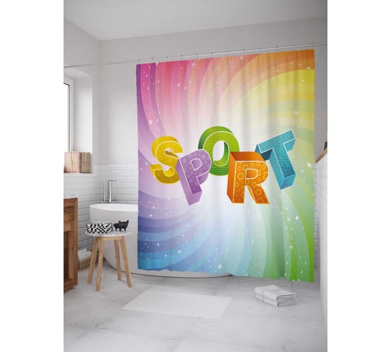 Штора (занавеска) для ванной JoyArty "Спорт" из сатена, 180х200 см с крючками, sc_31175