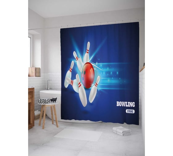 Штора (занавеска) для ванной JoyArty "Спортивный боулинг" из сатена, 180х200 см с крючками, sc_38154