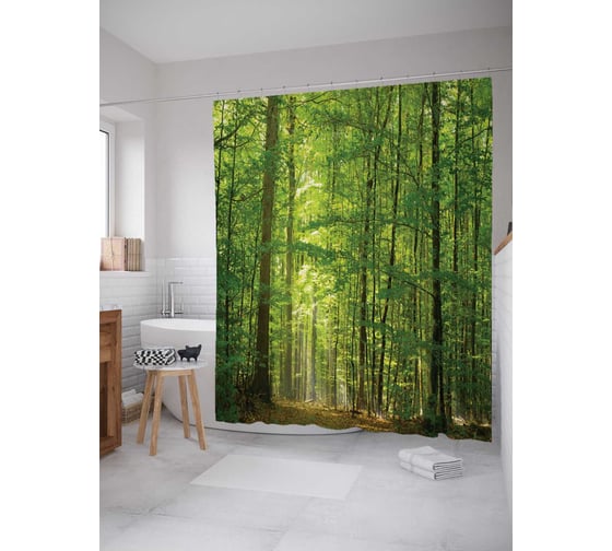 Штора (занавеска) для ванной JoyArty "Среди густого леса" из сатена, 180х200 см с крючками, sc_12611