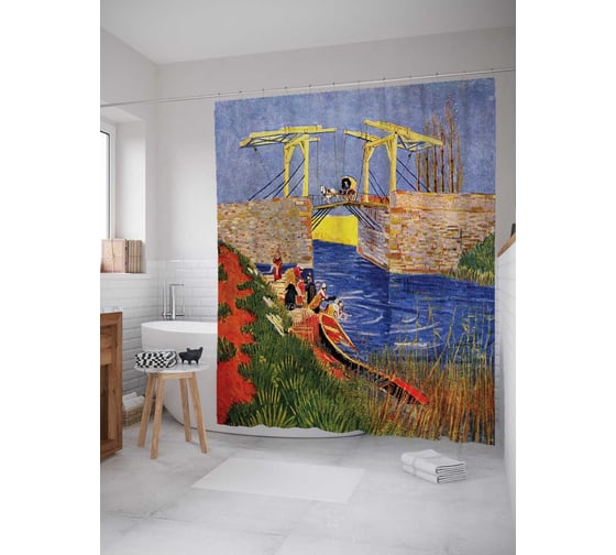 Штора (занавеска) для ванной JoyArty "Средневековый мост.Живопись" из сатена, 180х200 см с крючками, sc_5176