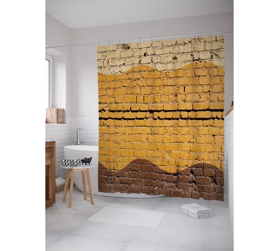 Штора (занавеска) для ванной JoyArty "Старая кирпичная кладка" из сатена, 180х200 см с крючками, sc_55727