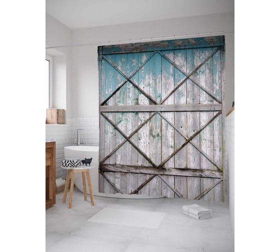 Штора (занавеска) для ванной JoyArty "Старенькие ворота" из сатена, 180х200 см с крючками, sc_9792