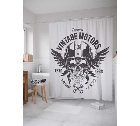 Штора (занавеска) для ванной JoyArty "Старинные двигатели" из сатена, 180х200 см с крючками, sc_9762