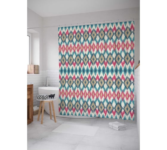 Штора (занавеска) для ванной JoyArty "Старинный узор" из сатена, 180х200 см с крючками, sc_18045
