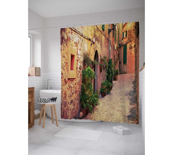 Штора (занавеска) для ванной JoyArty "Старый город" из сатена, 180х200 см с крючками, sc_11771