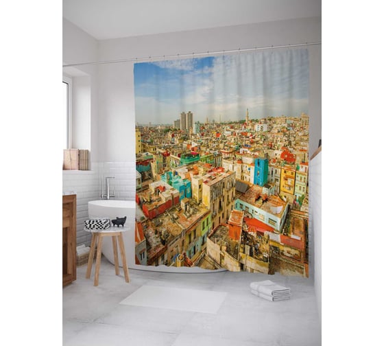 Штора (занавеска) для ванной JoyArty "Старый город сверху" из сатена, 180х200 см с крючками, sc_37496