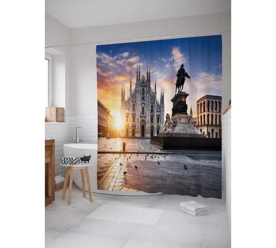 Штора (занавеска) для ванной JoyArty "Статуя на площади" из сатена, 180х200 см с крючками, sc_20190