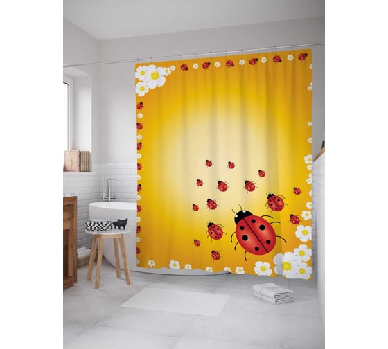 Штора (занавеска) для ванной JoyArty "Стая божьих коровок" из сатена, 180х200 см с крючками, sc_6120