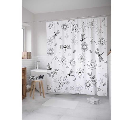 Штора (занавеска) для ванной JoyArty "Стая стрекоз" из сатена, 180х200 см с крючками, sc_35189