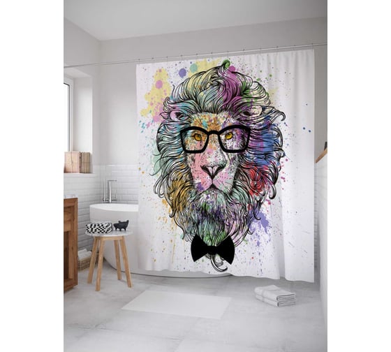 Штора (занавеска) для ванной JoyArty "Стильный лев" из сатена, 180х200 см с крючками, sc_21058