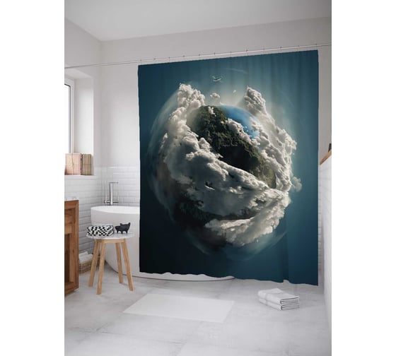 Штора (занавеска) для ванной JoyArty "Стратосфера" из сатена, 180х200 см с крючками, sc_37978