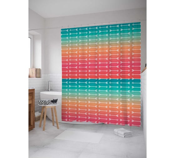 Штора (занавеска) для ванной JoyArty "Стрелы преследуют" из сатена, 180х200 см с крючками, sc_14640