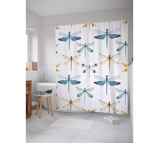 Штора (занавеска) для ванной JoyArty "Стремительные стрекозы" из сатена, 180х200 см с крючками, sc_18365