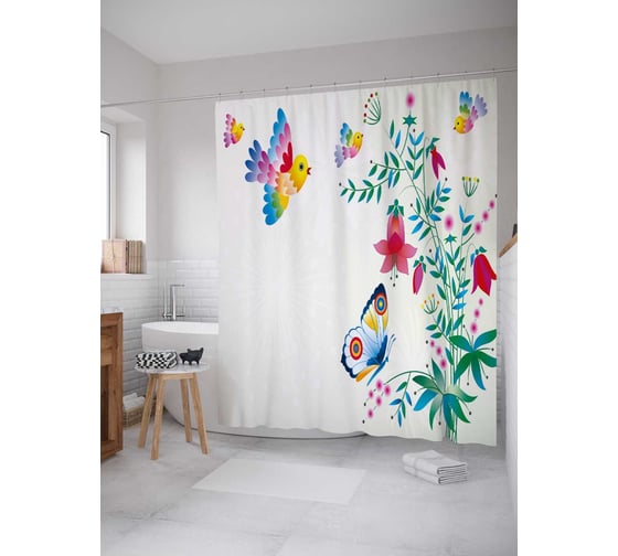 Сопутствующие товары для шторки-занавески JOYARTY Стремление к цветам из сатена, 180х200 см с крючками