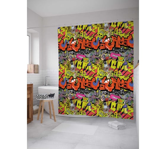 Сопутствующие товары для шторки-занавески JOYARTY Стрит арт из сатена, 180х200 см с крючками