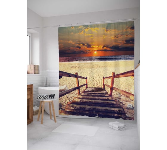 Штора (занавеска) для ванной JoyArty "Ступеньки на закате" из сатена, 180х200 см с крючками, sc_16130
