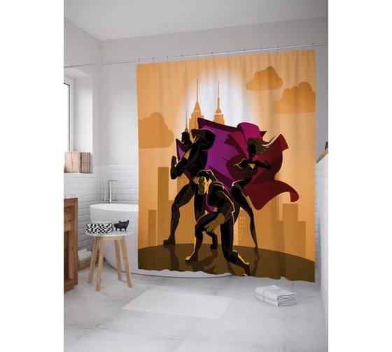 Сопутствующие товары для шторки-занавески JOYARTY Супермены на страже из сатена, 180х200 см с крючками