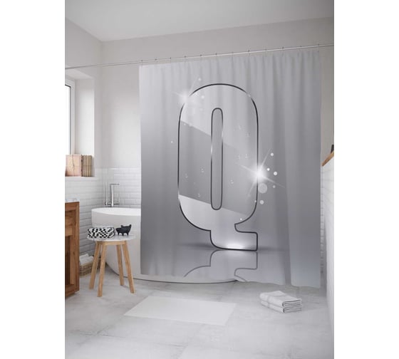 Штора (занавеска) для ванной JoyArty "Сверкающая q" из сатена, 180х200 см с крючками, sc_4522Q